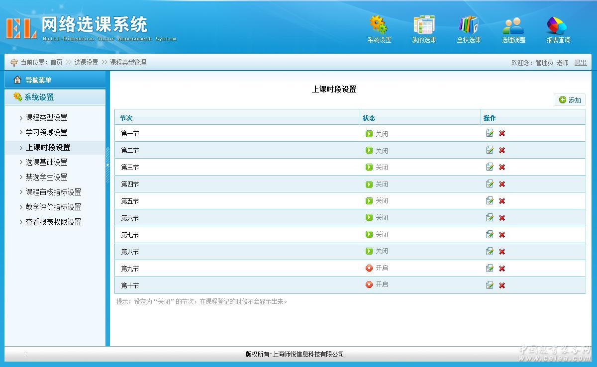 上課時段設(shè)置界面