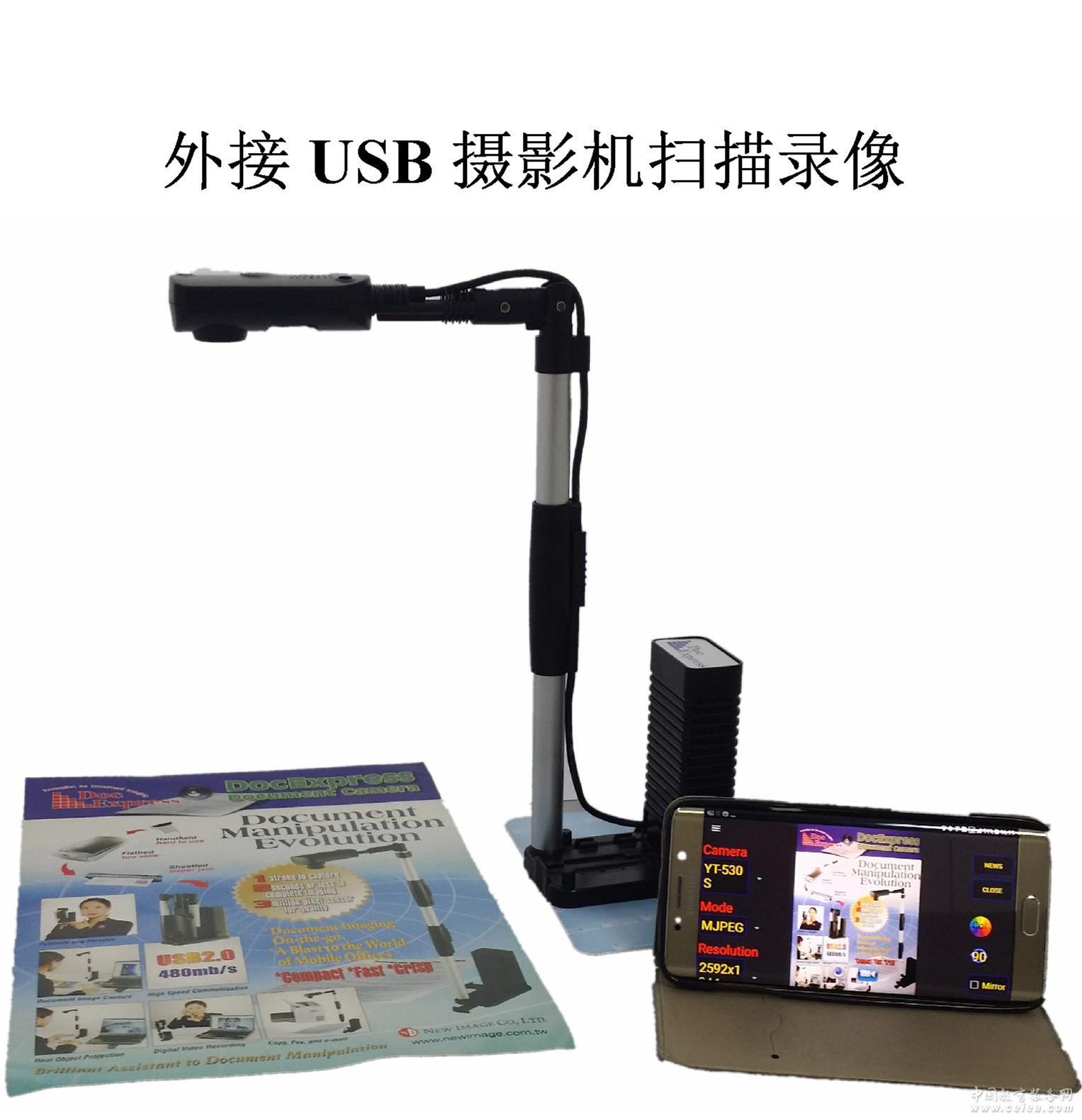 Cam530S-文檔掃描,PDF生成,人物自拍,錄影。 可用手機(jī),平板電腦之前后鏡頭拍攝,亦可外接USB UVC攝影機(jī)DE530S拍攝。手機(jī)或平板電腦即變身為掃描器,可攜帶式文件拍攝儀,自拍機(jī),錄影機(jī)。適用于Android 4.4以上。