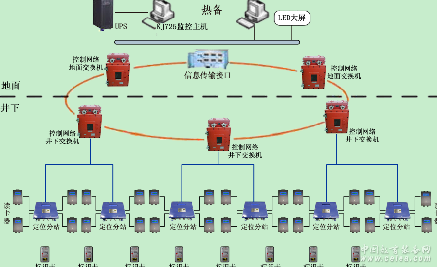 產品詳細介紹一、KJ725礦用/煤礦井下人員定位管理系統主要介紹: KJ725礦用/煤礦井下人員定位管理系統是專為煤礦設計, 能夠及時、準確的將井下各個區域人員及機車的運行動態情況反映到地面計算機系統,使管理人員能夠隨時掌握井下人員、機車的分布狀況和每個礦工的運動軌跡,以便于進行更加合理的調度管理。當事故發生時,救援人員也可根據井下人員及設備定位系統所提供的數據、圖形,迅速了解有關人員的位置情況,及時采取相應的救援措施,提高應急救援工作的效率。 KJ725礦用/煤礦井下人員定位管理系統是集井下人員考勤、跟蹤定位、災后急救、日常管理等一體的綜合性運用系統,集合了國內識別技術、傳輸技術、軟件技術等最頂尖的產品和技術,是目前國內技術先進、運行穩定、設計專業的井下人員管理系統。這一科技成果的實現,將為煤礦企業的安全生產和日常管理上臺階以及事故急救帶來了新的契機。 二、KJ725礦用/煤礦井下人員定位管理系統人員定位管理系統構成: KJ725礦用/煤礦井下人員定位管理系統系統主要由中心站主機、KJ725礦用人員管理系統軟件、KJ725-J一般兼礦用本安型信息傳輸接口、KJ725-F礦用本安型信息傳輸分站、KJ725-D礦用本安型讀卡器、KJ725-K標識卡、通訊電纜、KDW127/18B礦用隔爆兼本安型直流穩壓電源等組成。 三、KJ725礦用/煤礦井下人員定位管理系統系統特點: 1、 多功能:實現了井下人員實時跟蹤定位、輔助考勤、軌跡查詢等重要安全管理功能。 2、 高容量:在井下可容納256個KJ725-D礦用本安型讀卡器,可容納員工KJ725-K型標識卡數量達60000張,以滿足現有大中型煤礦的需要。 3、 可實現全面監控:員工經過讀卡器時,讀卡器自動識別員工攜帶的標識卡,將數據存儲到分站,由分站將數據上傳到中心站主機,實現較低的成本下的對井下人員的全面監控。 4、 多種技術集成:系統集成了無線數據傳輸、RS-485總線傳輸、低功耗微電腦技術、在線編程和多層次軟件技術。 四、KJ725礦用/煤礦井下人員定位管理系統系統功能: KJ725礦用人員管理系統具有以下功能: 1、井下人員實時動態跟蹤、位置自動顯示; 2、 井下人員等移動目標跟蹤定位; 3、 井下人員運行軌跡回放; 4、 區域某一歷史時刻井下人員分布; 5、定位目標的考勤、統計、存儲、打印; 6、 井下出現事故,可據本系統提供的準確位置信息實施人員搜索救護,使損失 7、降到最低點,保障安全的水平得到提高; 8、自診斷功能,當系統出現故障時,自動顯示和報警; 9、 權限管理下的局域網資源共享。 五、KJ725礦用/煤礦井下人員定位管理系統主要組成部分介紹: KJ725礦用人員管理系統是有以下產品組成: 1) KJ725-J一般兼礦用本安型信息傳輸接口 a)供電電壓:交流電壓 220V 允許偏差-10%~+10%; b)傳輸信號工作電壓峰峰值: 1.0~8.0 V c)傳輸方式:485,主從雙向半雙工; d) 傳輸速率:2.4kbps e)最大傳輸距離:接口到分站最大傳輸距離為5km,最遠端分站和接口之間串入一個中繼功能分站后的最大傳輸距離為10km。 f)接口容量:16臺分站 2) KJ725-F礦用本安型信息傳輸分站 a)工作電壓:18V(DC) b)工作電流:≤500mA c)傳輸方式:485,主從雙向半雙工; d)傳輸速率:2.4Kbps e)傳輸信號工作電壓峰峰值電壓: 1.0V~8.0 V f)最大傳輸距離:分站和分站之間最大傳輸距離5km,分站與接口之間的最大傳輸距離為5km,分站和讀卡器之間的最大傳輸距離為2km,分站兼有中繼功能。 3) KJ725-D礦用本安型讀卡器 a)工作電壓:18V(DC) b)工作電流:≤100 mA c)調制方式:GFSK d)接收靈敏度:≤-80dBm e)識別距離:≥20m(空曠無障礙)。 f)識別位移速度:≥5m/s g)同時識別能力:≥80個卡 h)傳輸方式:485總線 i) 傳輸速率:2.4kbps j)傳輸信號工作電壓峰峰值電壓: 1.0V~8.0 V k)最大傳輸距離:與分站之間的最遠傳輸距離為2km 4) KJ725-K標識卡 a)工作電壓:3V (DC) b)卡最大待機電流: ≤ 5uA,待機時間:1.0~1.3s c)卡最大發射電流:≤ 15mA,發射時間:1.3~1.5ms d)卡最大激活電流: ≤5mA, 激活時間: 3~10ms e)調制方式:GFSK f)發射功率:-20±10dBm g)通訊距離:≥20m(卡與讀卡器之間空曠無障礙) h)編碼范圍:1-8000 i)連續工作時間:≥2年(電池不可更換) 5)KDW127/18B礦用隔爆兼本安型直流穩壓電源 電源輸入:AC 127V 頻率50Hz; 電壓變化范圍75%~110%; 電源輸出:18V 額定負載電流:700mA; 保護方式:雙重過壓、過流保護; 工作方式:連續,不間斷供電; 備用電池:單節電池容量:1.2V/ 4Ah;電池數量:由1.2V/4Ah×10節串連組成,供電時間>2小時; 充電方式:自動浮充。 |