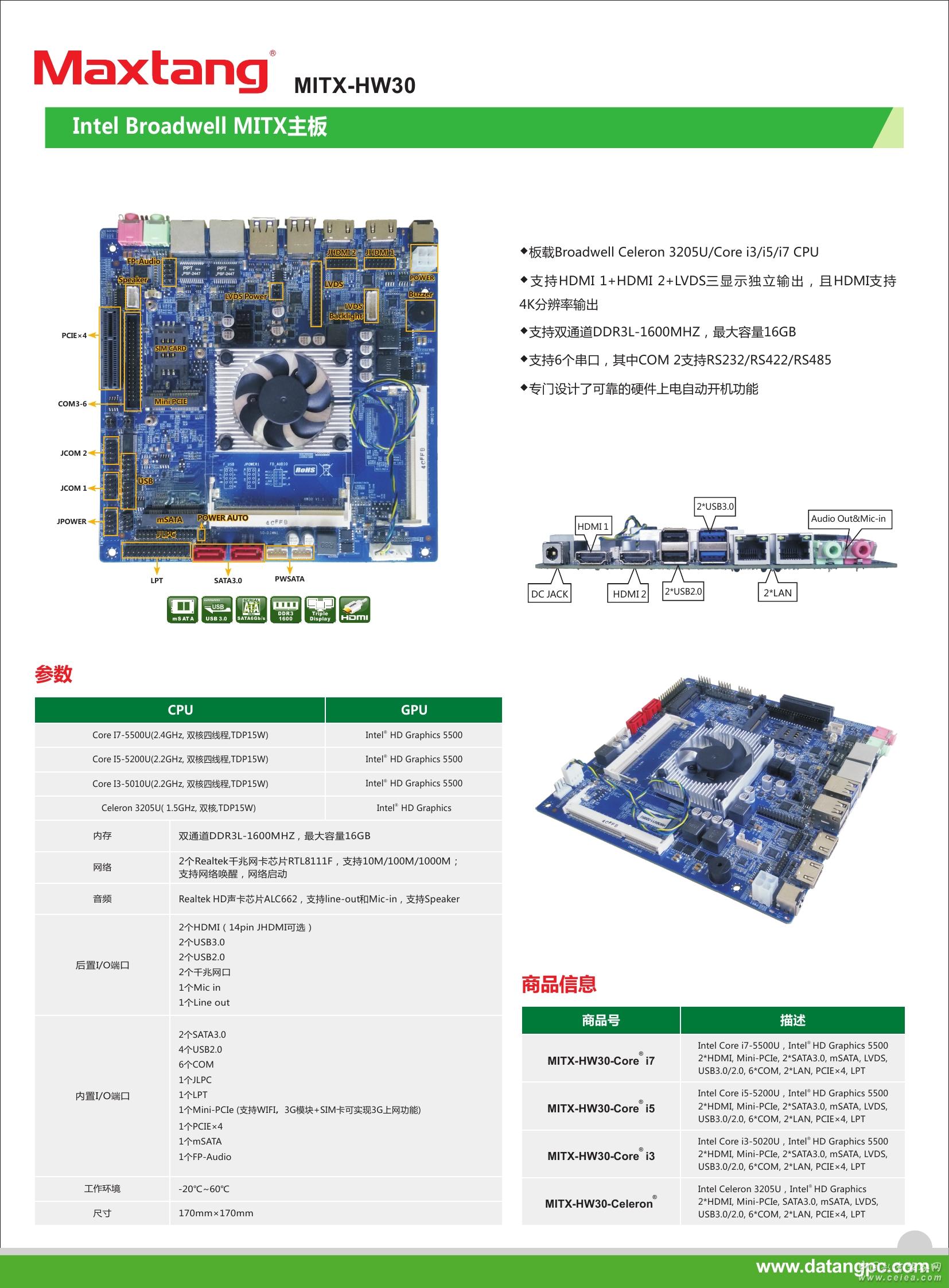 大唐 MINI-ITX 170*170 I5 5200U 主板