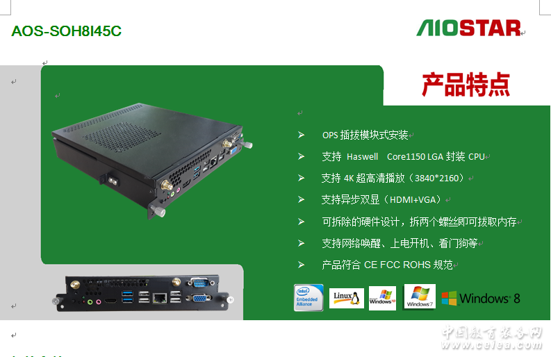 AIOSTAR AOS-SOH8I45C OPS教育設備專業電腦