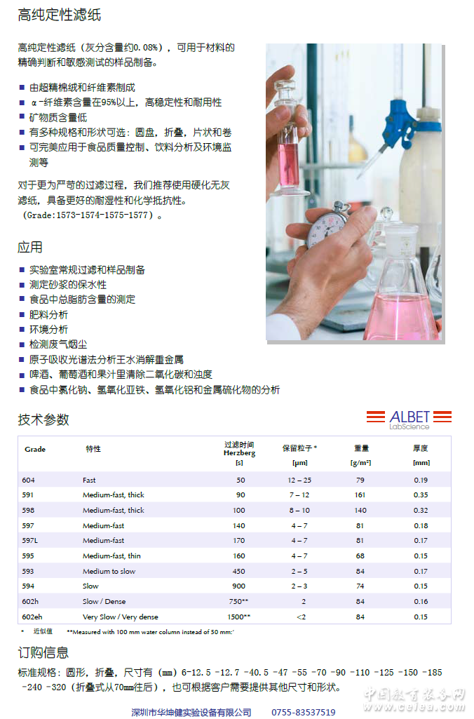 產(chǎn)品詳細(xì)介紹始創(chuàng)于1584年的哈內(nèi)姆勒,是德國(guó)最古老的紙業(yè)制造者。 在400余年的悠久歷史中,公司的創(chuàng)新實(shí)力不斷增強(qiáng),通過(guò)與全球合作伙伴的密切合作,我們可以將研究成果快速轉(zhuǎn)化為新產(chǎn)品。 哈內(nèi)姆勒生產(chǎn)世界最高質(zhì)量的過(guò)濾材料,已有超過(guò)130年的歷史。我們的競(jìng)爭(zhēng)優(yōu)勢(shì)在于產(chǎn)品的高純度和一致性。從原材料的選擇,到生產(chǎn)流程嚴(yán)格的質(zhì)量控制,使我們可以為客戶的高重現(xiàn)性需求提供保證。 我們的產(chǎn)品在多個(gè)領(lǐng)域都得到了客戶的認(rèn)可,包括食品飲料行業(yè),制藥和化學(xué)行業(yè),農(nóng)業(yè)產(chǎn)業(yè),環(huán)境監(jiān)測(cè)與汽車(chē)工程領(lǐng)域。 ALBET LabScience是我們的一個(gè)產(chǎn)品商標(biāo),產(chǎn)品系列里包括濾紙,濾膜,濾紙筒和注射器過(guò)濾器等多種產(chǎn)品,專門(mén)提供日常實(shí)驗(yàn)室應(yīng)用,產(chǎn)品多種規(guī)格大小以供選擇。 哈內(nèi)姆勒鄭重承諾: 1、100多年開(kāi)發(fā)和制造濾紙的經(jīng)驗(yàn); 2、最高質(zhì)量標(biāo)準(zhǔn)-所有測(cè)試方法均標(biāo)準(zhǔn)化; 3、注重客戶和市場(chǎng)需求; 4、完整的批次追溯系統(tǒng),可追溯到原材料。 硬化的高純?yōu)V紙(灰分含量約0.05%)具有極高的化學(xué)和物理性能,特別適用于真空和壓力條件下過(guò)濾, 以及在酸性和堿性溶液中的使用。 由超精棉絨和纖維素制成; α-纖維素含量在95%以上,具有很高的穩(wěn)定性和耐用性; 濕強(qiáng)度高;容易刮下或洗下沉淀,無(wú)纖維釋出; 經(jīng)少量含氮樹(shù)脂硬化,沒(méi)有雜質(zhì)混入; 礦物質(zhì)含量低; 高耐腐蝕性,如硫酸和硝酸(40%,50℃),堿液(10%,20℃); 有多種規(guī)格可選,圓盤(pán)、折疊、片式和卷式。 |