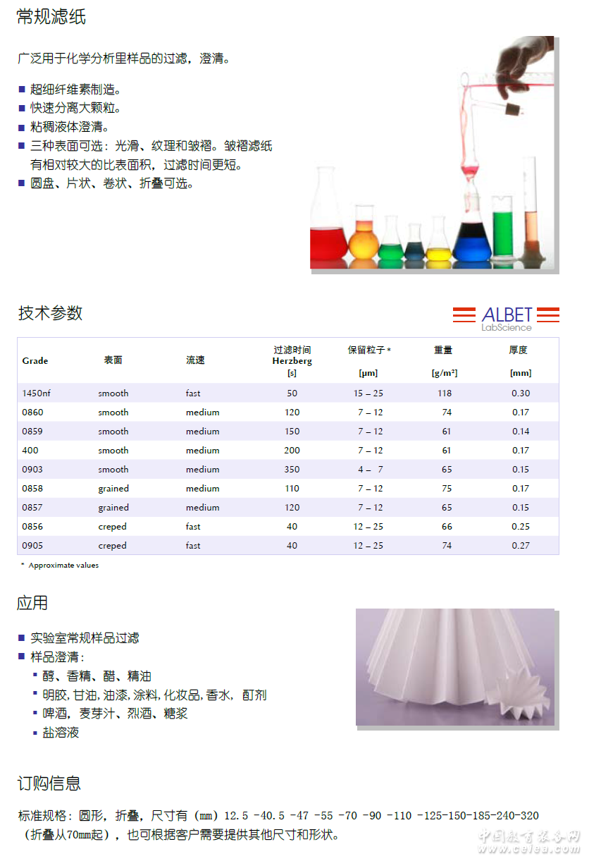 產品詳細介紹始創于1584年的哈內姆勒,是德國最古老的紙業制造者。 在400余年的悠久歷史中,公司的創新實力不斷增強,通過與全球合作伙伴的密切合作,我們可以將研究成果快速轉化為新產品。 哈內姆勒生產世界最高質量的過濾材料,已有超過130年的歷史。我們的競爭優勢在于產品的高純度和一致性。從原材料的選擇,到生產流程嚴格的質量控制,使我們可以為客戶的高重現性需求提供保證。 我們的產品在多個領域都得到了客戶的認可,包括食品飲料行業,制藥和化學行業,農業產業,環境監測與汽車工程領域。 ALBET LabScience是我們的一個產品商標,產品系列里包括濾紙,濾膜,濾紙筒和注射器過濾器等多種產品,專門提供日常實驗室應用,產品多種規格大小以供選擇。 哈內姆勒鄭重承諾: 1、100多年開發和制造濾紙的經驗; 2、最高質量標準-所有測試方法均標準化; 3、注重客戶和市場需求; 4、完整的批次追溯系統,可追溯到原材料。