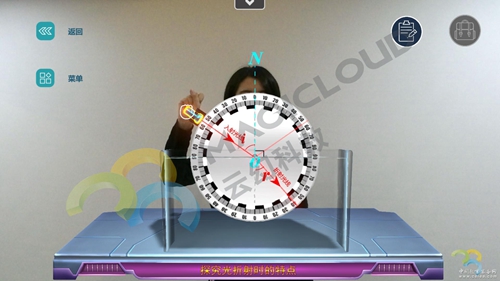 云幻科教AR實踐探究實驗室,綜合應用AI和AR技術,通過3D建模虛擬再現真實的實驗場景,借助先進的體感交互設備Kinect進行虛實互動,將真實的老師與虛擬仿真的實驗器材結合到一個畫面里,老師實現無需佩戴任何體感設備,純手勢進行實驗互動教學。云幻科教AR實踐探究實驗室將原本難以實際操作、存在一定危險的實驗通過增強現實技術實現,讓現實與虛擬進行互動,大大降低了實驗風險和實驗成本。