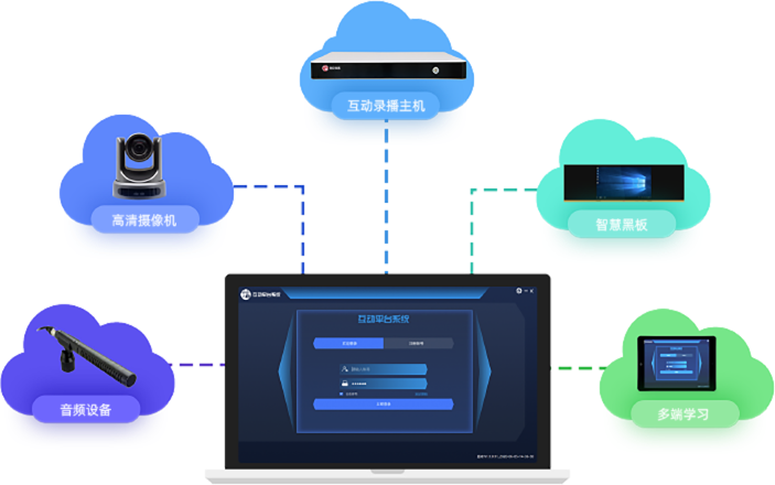 本方案由智慧黑板、互動錄播主機、高清攝像機、專業音頻設備、視頻互動應用云平臺等產品組成。