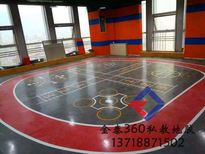 金泰健身房專用塑膠地板充分解決了以上問題: 1、綠色環保 金泰健身房專用塑膠地板采用全新原材料生產,同嬰兒奶瓶原材料級別,具有高新技術抗菌功能,具有無毒、無味、綠色環保、防水、防滑、防霉菌等特點。 2、高彈性和超強抗沖擊 金泰健身房專用地板質地較軟所以彈性很好,在重物的沖擊下有著良好的彈性恢復,卷材地板質地柔軟彈性更佳,同時PVC地板具有很強的抗沖擊性,對于重物沖擊破壞有很強的彈性恢復,不會造成損壞。優異的PVC地板能最大限度的降低地面對人體的傷害,并可以分散對足部的沖擊,最新研究數據表明,在人流量較大的空間鋪裝了優異的PVC地板后,其人員摔倒及受傷的比率較其它地板減少了近70%。同時對噪音有較強的吸收能力,不會產生噪音問題。 3、尺寸穩定性 金泰健身房專用地板基層添加了玻璃纖維層,經過特殊處理工藝使其粘合,產品的尺寸穩定性極佳,適合用于熱脹冷縮的地面,即使使用在地板濕氣較大的地面,也不會變形,能夠長期維持原狀,不會開裂,不會收縮。 4、超強防滑 金泰健身房專用地板表層的耐磨層有特殊的防滑性,而且與普通的地面材料相比,PVC地板在粘水的情況下腳感更澀,更不容易滑到,即越遇水越澀。 5、金泰360健身房專用地板 此款地板是針對健身房私教專區而打造的,擁有各種私教圖案,對學員的各種健身方法和姿勢提供專業的輔助,讓健身專業,讓您的健身房與眾不同。