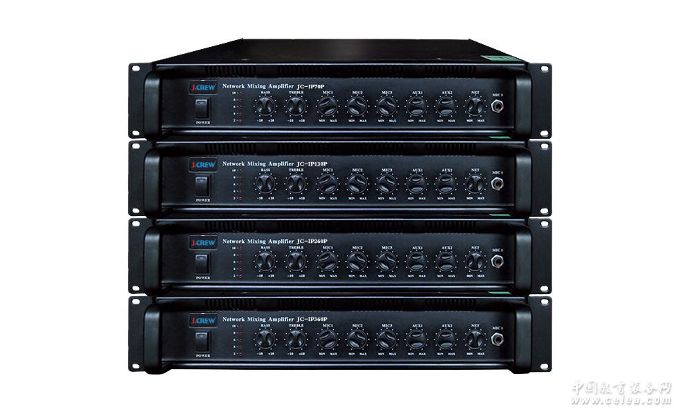 數據參考: 型號 JC-IP70P JC-IP130P JC-IP260P JC-IP360P 額定功率 70W 130W 260W 360W AUX輸入靈敏度 775mV MIC輸入靈敏度 5mV 信噪比 >72dB 網絡接口 標準RJ45 支持協議 TCP/IP UDP IGMP(組播) 傳輸速率 10Mbps 音頻模式 16位立體聲CD音質 音頻格式 MP3/MP3 采樣率 8KHz-48KHz 保護 高溫,直流輸出,負載短路,保護電路 電源 AC 220V±10%/50Hz 耗電量 100W 200W 400W 500W 尺寸 89×483×382mm 凈重 10.25kg 11.5kg 14Kg 14.5Kg |