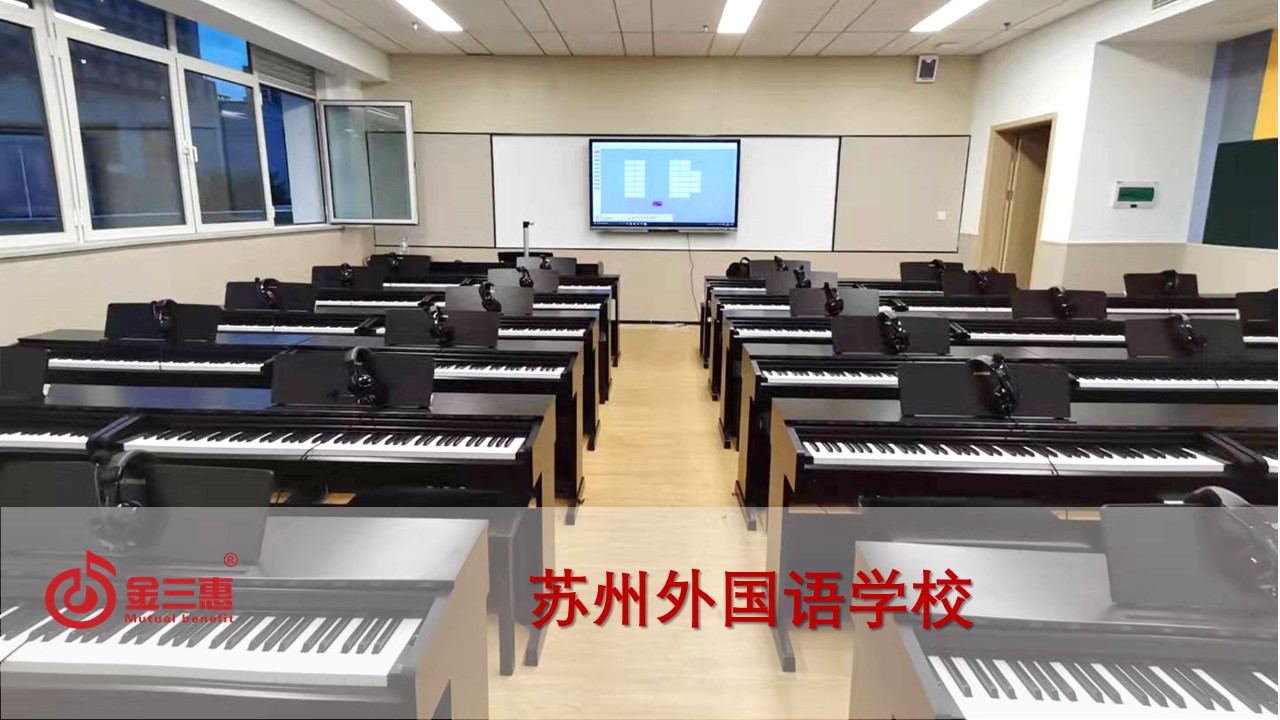 蘇州外國語學校的數字音樂電鋼琴教室正式開始使用,本校數字化音樂教室由北京金三惠科技有限公司負責提供、安裝、培訓。
