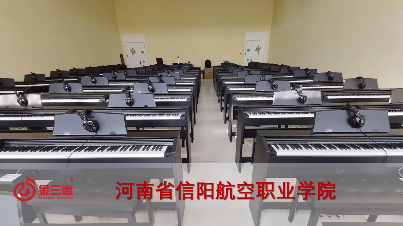 河南省信陽航空職業學院的數字音樂電鋼琴教室開始使用,由北京金三惠科技有限公司負責提供、安裝、培訓。