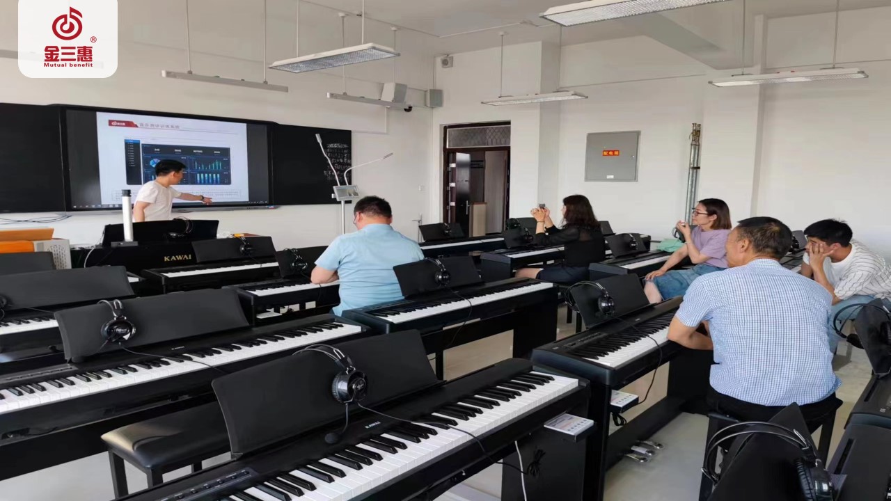 金三惠為新疆第五師雙河職業(yè)技術(shù)學(xué)校策劃了專業(yè)的智能音樂化音樂教室,教室配備了音樂教室控制系統(tǒng)和智能電鋼琴。同時(shí),也對(duì)教師培訓(xùn)通過該系統(tǒng)的操作,得到了教師們的高度贊賞,真正實(shí)現(xiàn)了數(shù)字化音樂教室。