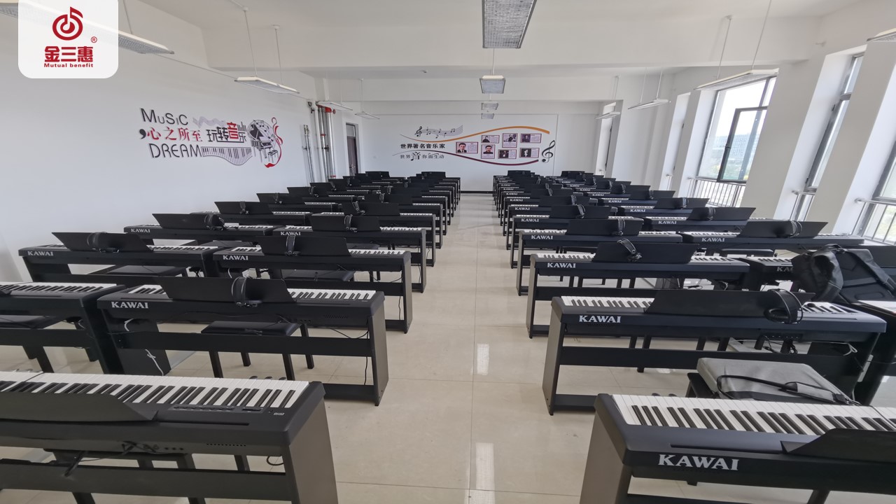 新疆第五師雙河職業(yè)技術(shù)學(xué)校緊跟教育部腳步,攜手北京金三惠科技有限公司為學(xué)生提供了50+1的電鋼琴教室,配備了金三惠電鋼琴教學(xué)系統(tǒng)、電鋼琴、數(shù)字音樂教學(xué)儀等教學(xué)教具,營造一個(gè)享受音樂的天地!