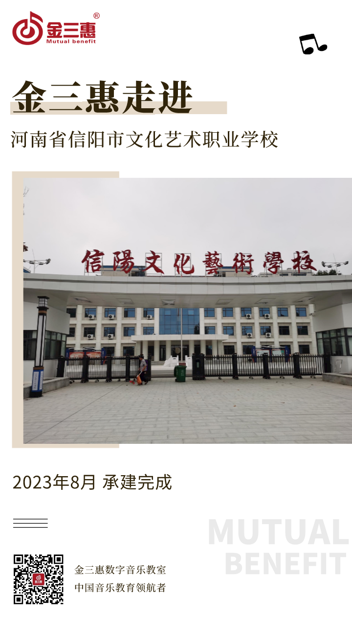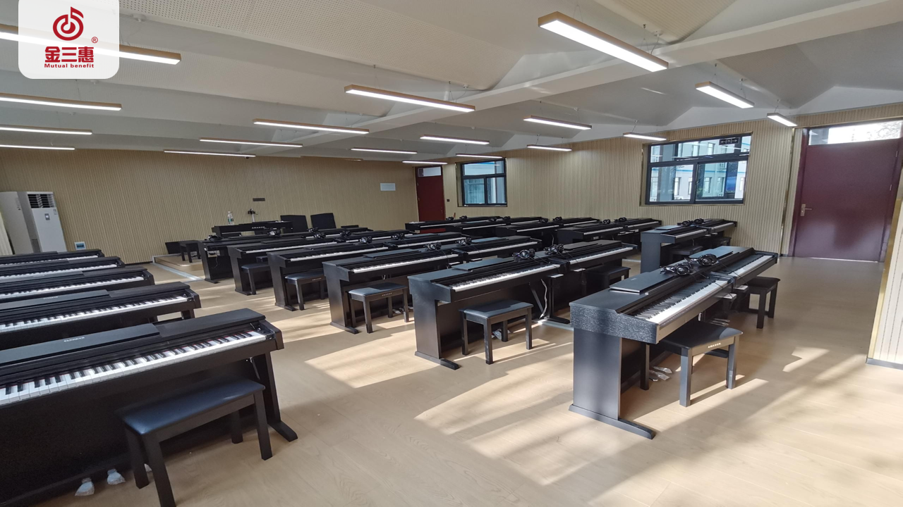 2023年8月,金三惠數(shù)字音樂教室走進(jìn)河南省信陽市文化藝術(shù)職業(yè)學(xué)校,為學(xué)生提供了26+1的電鋼琴教室,配備了金三惠電鋼琴教學(xué)系統(tǒng)、電鋼琴、數(shù)字音樂教學(xué)儀等教學(xué)教具等。