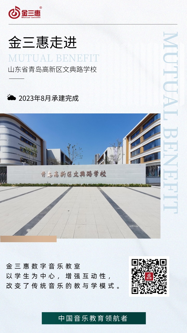 2023年8月,金三惠數字音樂教室為山東省青島高新區文典路學校提供、安裝、培訓的23+1智慧創客音樂教室正式開始使用!配備了金三惠教學系統、電鋼琴、數字音樂教學儀等教學教具。創客教室-金三惠 (jinsanhui.com)