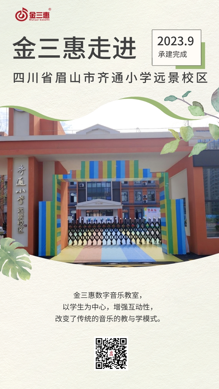 2023年9月,金三惠數(shù)字音樂教室走進(jìn)四川省眉山市齊通小學(xué)遠(yuǎn)景校區(qū),為學(xué)生提供了29+1、25+1的電鋼琴教室兩間,配備了金三惠電鋼琴教學(xué)系統(tǒng)、電鋼琴、數(shù)字音樂教學(xué)儀等教學(xué)教具等。