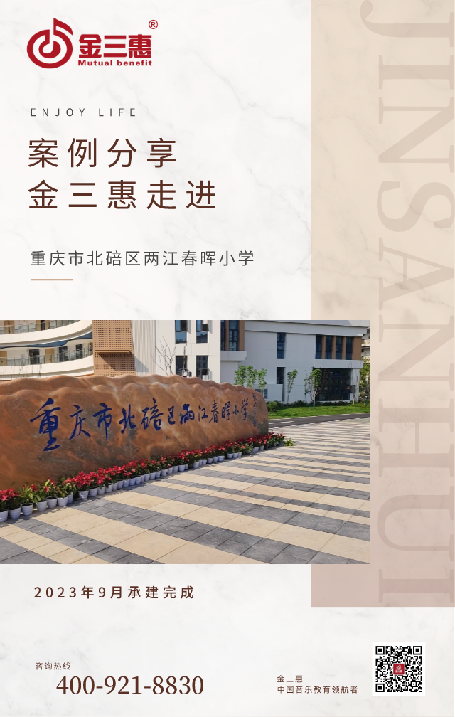 2023年9月,金三惠數(shù)字音樂教室走進(jìn)重慶市北碚區(qū)兩江春暉小學(xué),為學(xué)生提供了45+1電鋼琴教室,配備了金三惠電鋼琴教學(xué)系統(tǒng)、電鋼琴、數(shù)字音樂教學(xué)儀等教學(xué)教具等。
