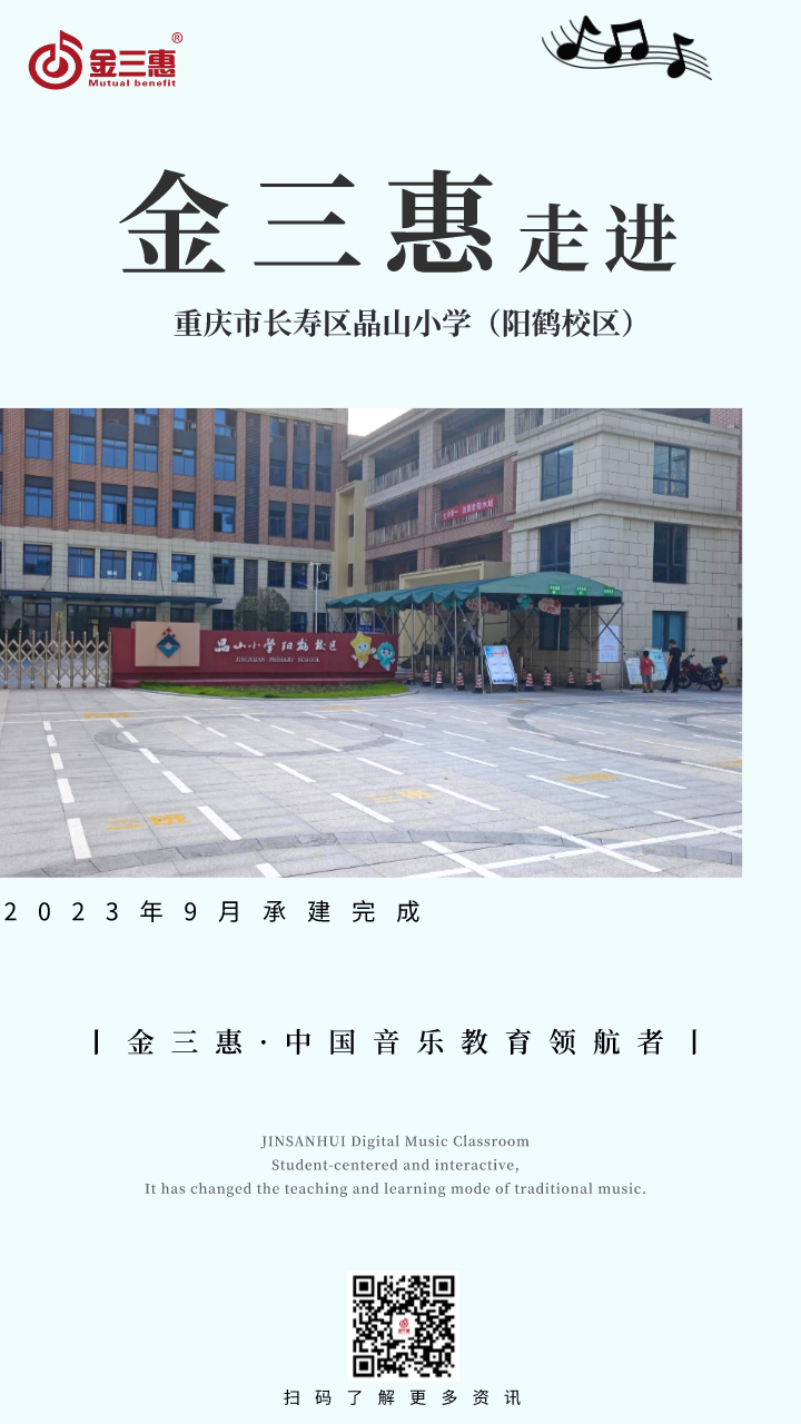 2023年9月,金三惠數(shù)字音樂教室走進重慶市長壽區(qū)晶山小學(xué)(陽鶴校區(qū)),為學(xué)生提供了28+1電鋼琴教室,配備了金三惠電鋼琴教學(xué)系統(tǒng)、電鋼琴、數(shù)字音樂教學(xué)儀等教學(xué)教具等。