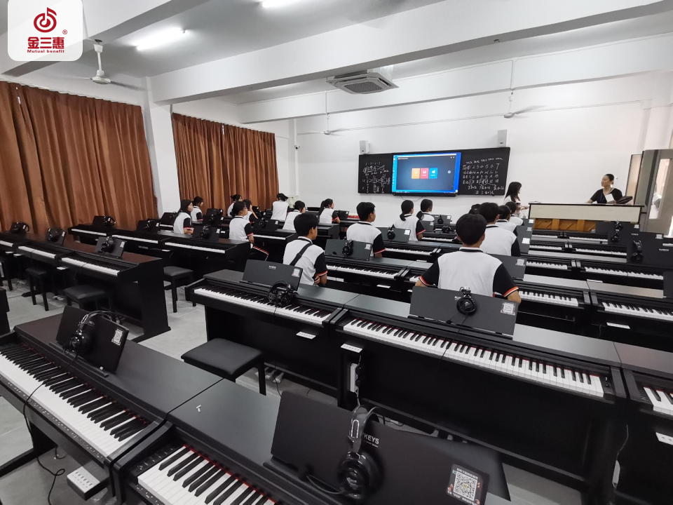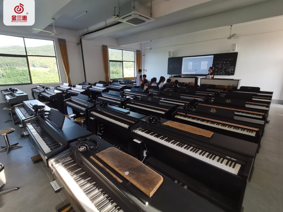 2023年9月,金三惠數字音樂教室為廣東省韶關市湞江中等職業學校提供、安裝、培訓的40+1、35+1電鋼琴教室以及舞蹈教室、合唱教室正式開始使用!配備了金三惠教學系統、電鋼琴、數字音樂教學儀、學生樂器等教學教具。電鋼琴室-金三惠 (jinsanhui.com)