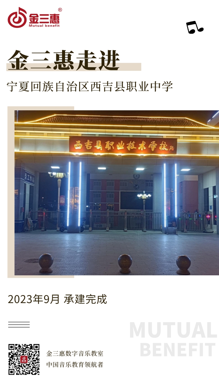 2023年9月,金三惠數字音樂教室走進寧夏回族自治區西吉縣職業中學,為學生提供了48+1的電鋼琴教室配備了金三惠電鋼琴教學系統、電鋼琴、數字音樂教學儀等教學教具等。電鋼琴室-金三惠 (jinsanhui.com)