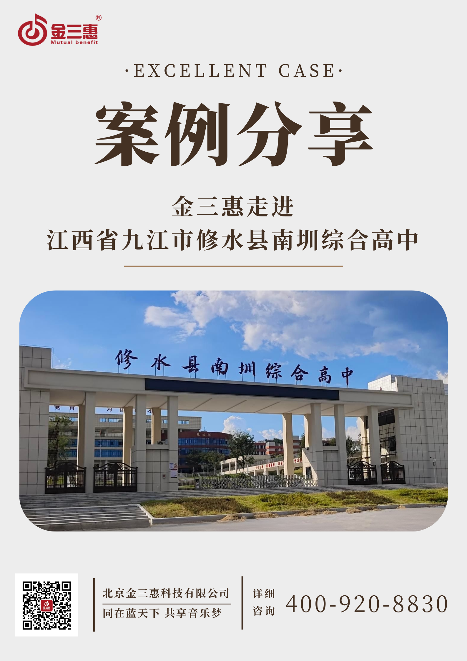 2025年8月,金三惠音樂教室走江西省九江市修水縣南圳綜合高中,為學校提供了28+1的電鋼琴教室,配備了金三惠電鋼琴教學系統、電鋼琴、數字音樂教學儀等教學教具。