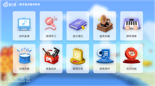 包含創(chuàng)作備課、授課學(xué)習(xí)、音樂理論、鑒賞拓展、鋼琴演奏、動(dòng)感樂器、音基闖關(guān)、管理任務(wù)、美育測(cè)評(píng)和知識(shí)拓展十大功能模塊。