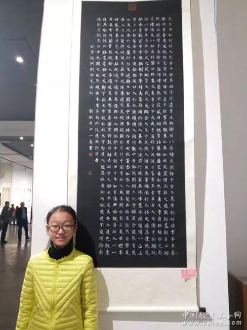 在入圍的近5000幅作品中,經(jīng)過初評(píng)、終評(píng)、現(xiàn)場(chǎng)復(fù)試三個(gè)環(huán)節(jié)的評(píng)選,最終,來自青島市西海岸新區(qū)第三實(shí)驗(yàn)小學(xué)五年級(jí)三班的劉昭君同學(xué)脫穎而出,喜獲小學(xué)組書法比賽一等獎(jiǎng)第一名的好成績(jī);張永銘、劉碩、王小涵三位同學(xué)進(jìn)百?gòu)?qiáng),獲小學(xué)組優(yōu)秀獎(jiǎng);馬先勇老師榮獲教師組二等獎(jiǎng)。其中,劉昭君同學(xué)作為學(xué)生代表在現(xiàn)場(chǎng)頒獎(jiǎng)會(huì)上作了經(jīng)驗(yàn)分享,贏得臺(tái)下一片贊譽(yù)!