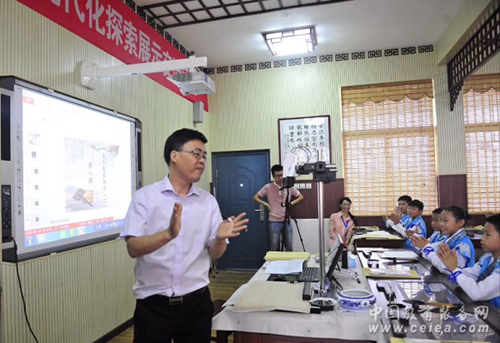 數(shù)字書(shū)法教學(xué)系統(tǒng)簡(jiǎn)潔大方的軟件設(shè)計(jì)、翔實(shí)豐富的課程資源在每一位學(xué)生的臨摹臺(tái)上清晰顯示。通過(guò)軟硬件設(shè)備實(shí)現(xiàn)了書(shū)寫(xiě)示范的高清同步傳播,讓學(xué)生近距離、多角度觀看例字的書(shū)寫(xiě)示范和講解。利用字帖排版系統(tǒng)將例字進(jìn)行排版推送到每一個(gè)數(shù)字臨摹臺(tái)進(jìn)行臨摹練習(xí),通過(guò)直播系統(tǒng)對(duì)學(xué)生作品進(jìn)行點(diǎn)評(píng),每一位學(xué)生都能夠看到老師點(diǎn)評(píng)同學(xué)的作品。體現(xiàn)了書(shū)法教育走向現(xiàn)代化的優(yōu)勢(shì),得到了武漢市教科院小學(xué)教學(xué)研究室羅昆霞主任的高度贊揚(yáng)。