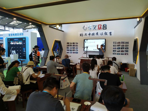 華文眾合此次展出的第五代智慧書法教室日前推出了“智能課程平臺”和“興趣體驗式學習軟件”兩項新功能。智能課程平臺包括了眾多模塊,從內置資源示范到學生動手體驗,再到知識擴展和原帖欣賞等一應俱全,興趣體驗式學習軟件包括識字體、拼字體等體驗學習方式,這兩者的結合,讓學生能夠更加直觀地比對各類字體,了解其間的特點,欣賞不同字體的美,提升書法教學效率的同時更多地提升學習書法的興趣。