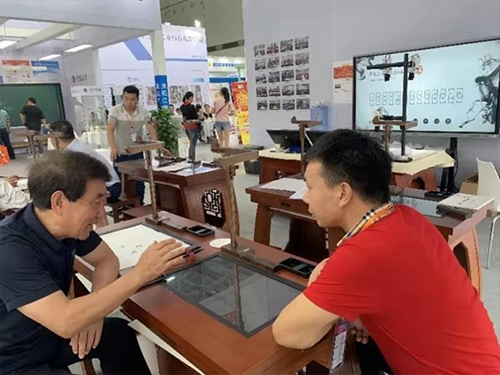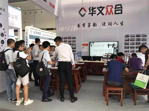 《中小學智慧書法教室裝備規范》團體標準的牽頭制定單位華文眾合參加了此次展示會,并展出最新產品——第五代智慧書法教室,受到大批觀眾的喜愛。展示會期間,多位行業協會領導蒞臨華文眾合展位進行參觀指導。