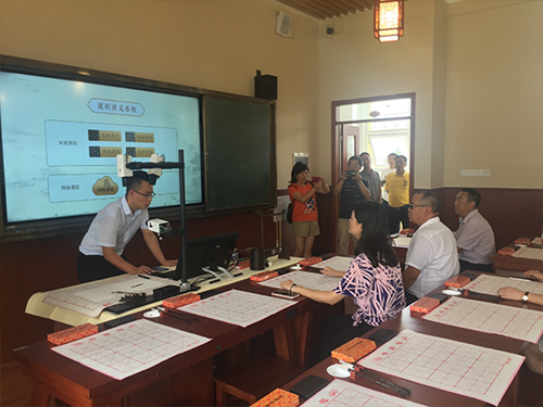 8月30日,峨眉山市第二小學(xué)華文眾合智慧書法教室竣工,市長吳小怡與當(dāng)?shù)亟逃、各名校代表共同前往參觀。吳小怡詳細(xì)詢問了教室使用細(xì)節(jié),同行各位名校代表認(rèn)真學(xué)習(xí)、拍攝記錄,對這種新型智慧書法教育設(shè)備高度認(rèn)可、紛紛稱贊。