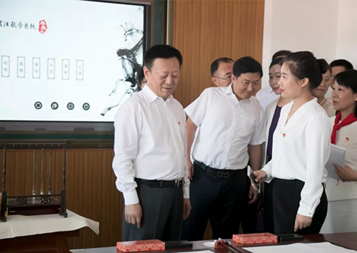 營口市委書記、市人大常委會主任趙長富一行參觀華文眾合智慧書法教室