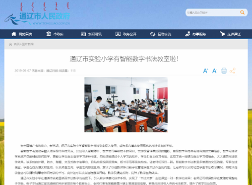 為全面推廣書法教育,日前,內蒙古通遼市實驗小學智能數字書法教室投入使用并對學校老師進行培訓。據《通遼日報》報道,該小學是全市首家使用現代化書法教室的學校。