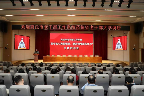 近日,河南省商丘市委組織部副部長、老干部局局長王培富帶領全市老干部工作系統(tǒng)一行60余人到河南省老干部大學參觀學習。省委組織部副部長、老干部局局長段君海,副局長王金貴陪同。