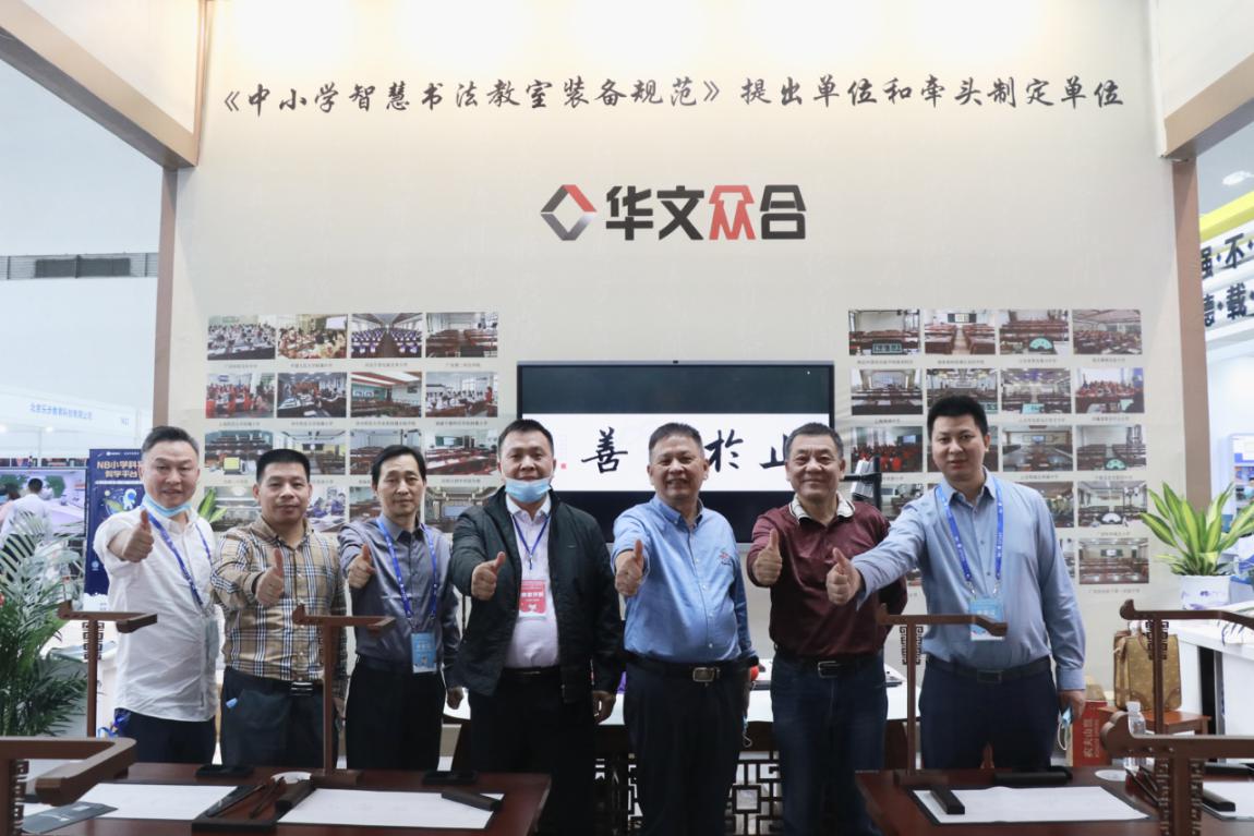 展示會上,華文眾合第六代智慧書法教室推出的無“電”終端、場景式網絡課堂、筆尖跟蹤技術三大亮點,可以讓教師教學中教得更順手、學生學得更開心。這一研究成果,得到眾多行業代表認可支持,大家深入交流了書法教育經驗,以求共同推進中國書法教育智慧化建設進程,共繪智慧書法未來新藍圖。