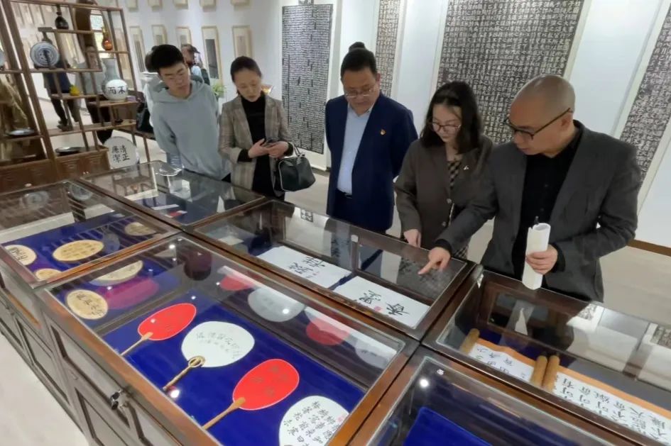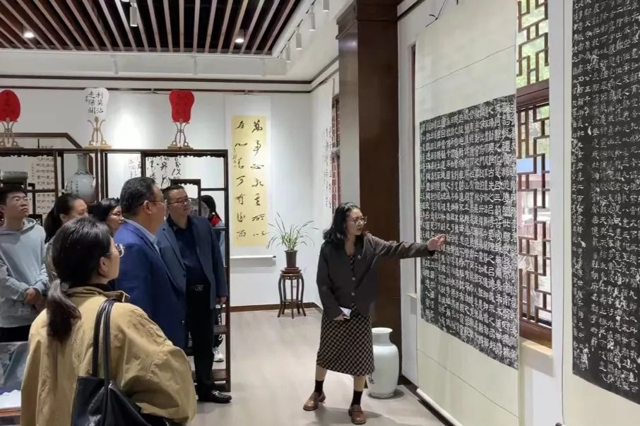 書法教學課結(jié)束后參會老師共同參觀了蘭花小學的蘭雅書院,蘭花小學以“蘭文化”為核心構(gòu)建的校園文化。書法展館中除了豐富的書法作品外,還有拓印的碑帖原文,除此之外還有以書法為主題的藝術(shù)作品,展館內(nèi)可謂琳瑯滿目,獲得參會老師的一致認可和贊揚。