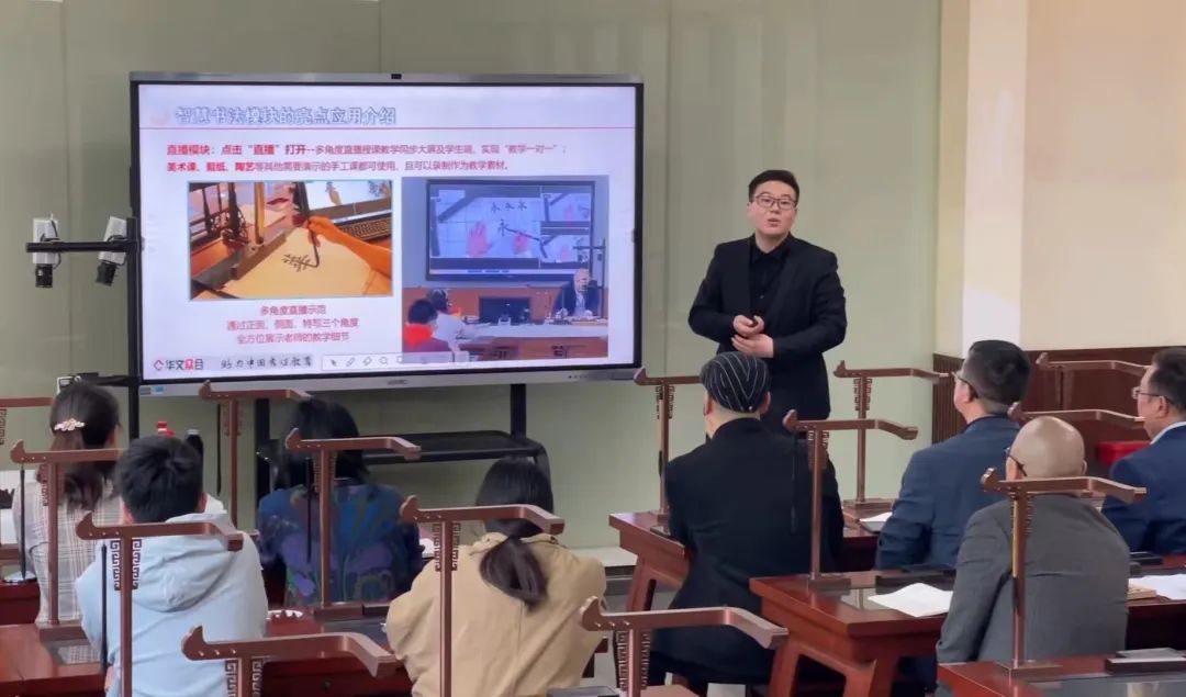 之后的時間里華文眾合的工作人員對華文眾合智慧書法教室做了產(chǎn)品介紹,以智慧書法教室使用技巧及學科融合為主題,介紹了如何用華文眾合智慧書法教室上好一堂書法課,把各個模塊組合起來靈活運用,讓書法課更生動、更形象、更有趣、更有內(nèi)涵。