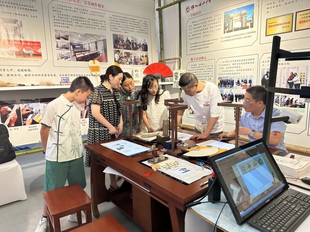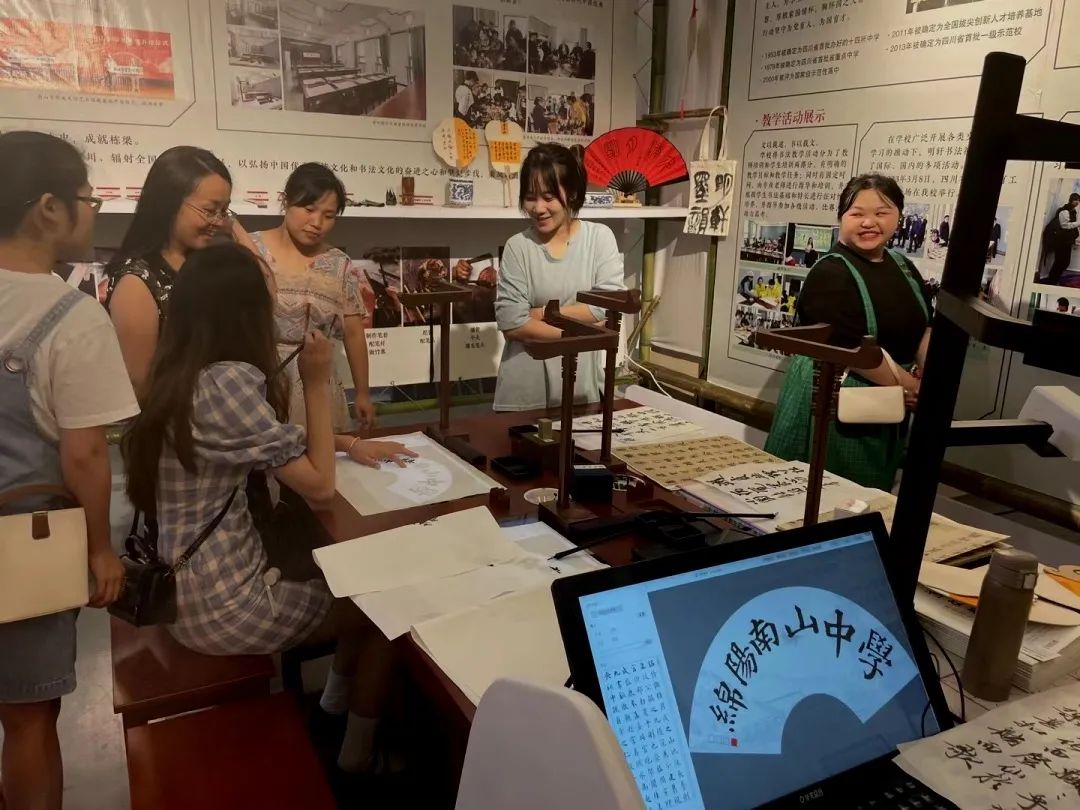 綿陽南山中學(xué)將華文眾合智慧書法教室的部分設(shè)備展示在現(xiàn)場,以高清臨摹體驗、快速集字創(chuàng)作、交互式的教學(xué)模式,為活動現(xiàn)場師生觀眾提供了書法學(xué)習(xí)新理念、新思路。
