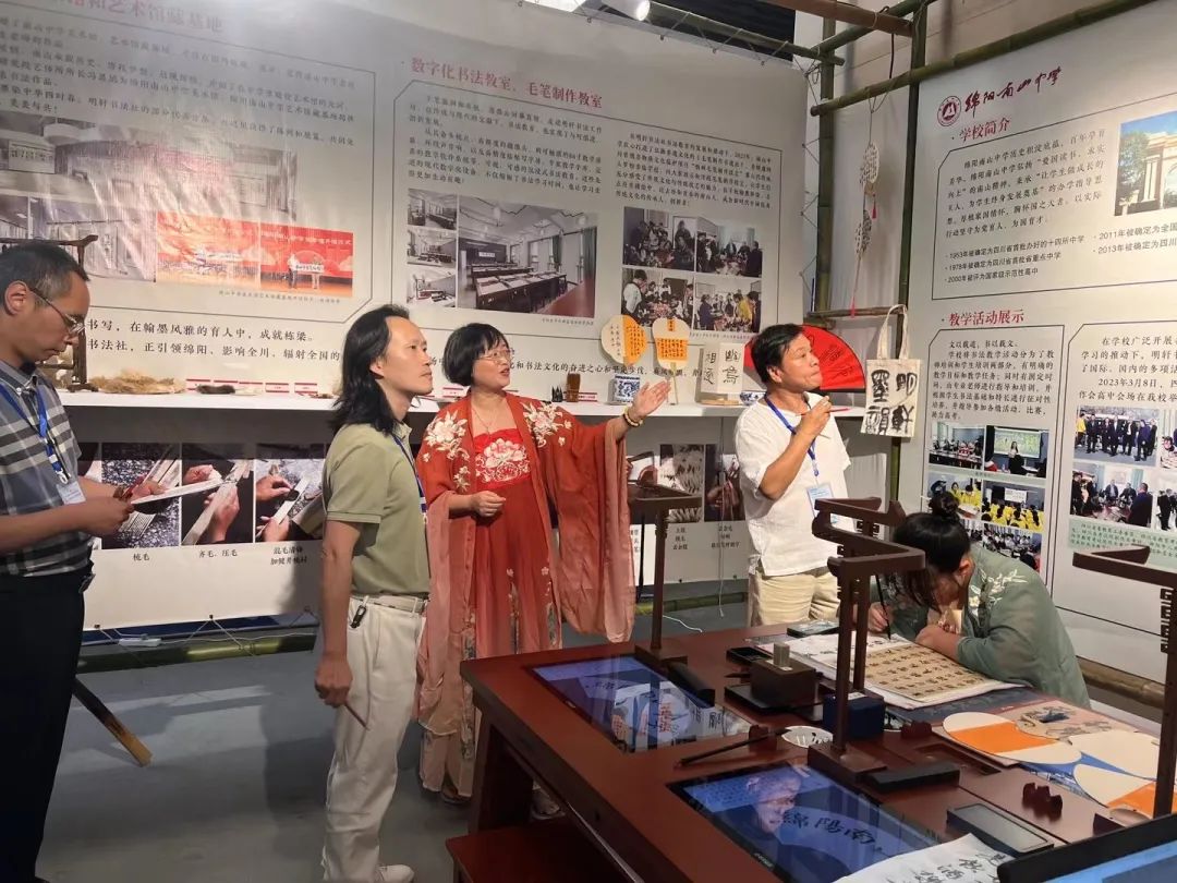 四川省教育科學(xué)研究院藝術(shù)與體育教育研究所所長馮恩旭一行參觀指導(dǎo)綿陽南山中學(xué)搭建的明軒書法坊,體驗華文眾合交互式數(shù)字臨摹臺,感受傳統(tǒng)和科技相融合的翰墨之美。