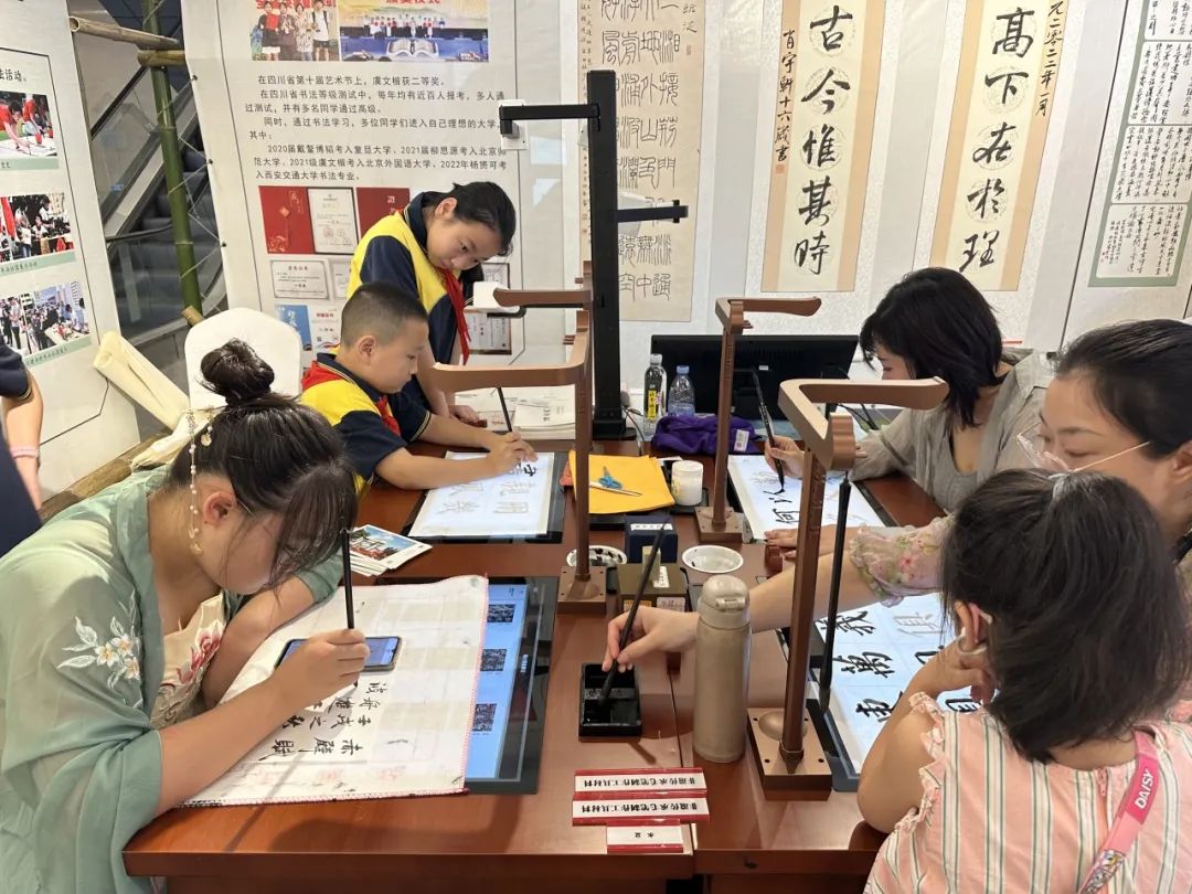 傳習(xí)工坊展為本屆青少年書畫傳習(xí)大會首設(shè),集中展現(xiàn)了四川特色鮮明、風(fēng)格獨特的書畫傳習(xí)校園工坊優(yōu)秀模式,借助智慧書法教學(xué)設(shè)備,以場景化、交互式的展陳方式,為全省書畫愛好者獻上了一場筆墨的瑰麗盛宴。