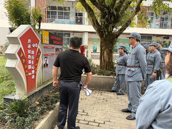 寶興縣靈關中心校的紅色基因,深植于 1935 年那段驚心動魄的革命歷史。在車道海校長的帶領下,志愿者一行首先參觀了校園內的陳云出川史實資料。泛黃的照片、珍貴的文獻,生動再現了陳云同志在地下黨員席懋昭(時任靈關小學校長)護送下,穿越封鎖線、輾轉上海恢復黨組織的艱險歷程。