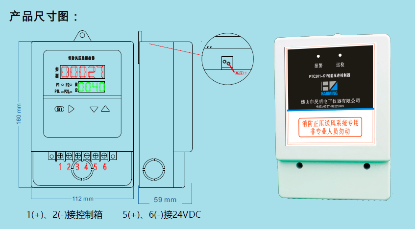 PTC201-K1正壓送風(fēng)壓力傳感器參數(shù) 壓力形式: 表壓,差壓 壓力形式:差壓,壓差 測量范圍:-100~100Pa 工作電壓:24VDC/3A 精 度:1級 耐 壓:1000Pa 動作壓力:前室/走廊動作壓力:30Pa,復(fù)位壓力:25Pa 樓梯間/走廊動作壓力:50Pa,復(fù)位壓力:40Pa 顯示說明:三位數(shù)字顯示實測壓差值 指示說明:綠色巡檢,紅色報警指示燈 輸出方式:無源開關(guān)信號,24VDC/3A 過程連接:高壓和低壓孔均為內(nèi)徑3mm軟管 管嘴連接:(H)高壓端,(L)低壓端 介質(zhì)溫度:-20~65℃ 待機功率:0.75W 報警功率:1.5W 外形尺寸:86*86*35 重 量:100g