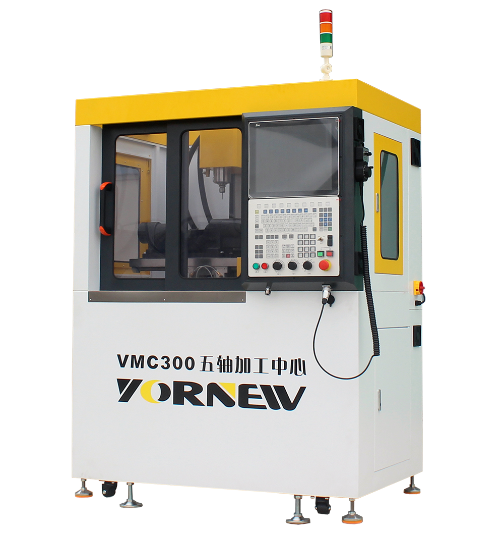 產品詳細介紹型號:VMC300 名稱:小型五軸加工中心 顯著特點 1、 使用220伏電壓,占地小,耗電少,采用全封閉安全設計結構,提高觀摩安全性的同時又保障機器的結構穩(wěn)固性美觀; 2、高強度樹脂砂鑄件,功能加大,5軸聯動,配置YORNEW M5五軸聯動數控系統(tǒng),適用國際通用程序,故障自動檢測報警功能、斷電記憶功能; 3、配置精密高速主軸單100-24000rpm,變頻G指令控制主軸轉速,主軸電機功率1.5Kw; 4、配置8工位快速換刀系統(tǒng),換刀時間4S,使用氣壓0.6 Mpa,可極大提高復雜產品的加工效率及加工精度; 5、采用C3級精密雙螺母滾珠絲桿,經中周波熱處理及精密研磨,各軸施以預拉減少熱變形,定位及重覆精度高; 6、XYZ軸采用伺服電機,最快移動速度10000mm/min; 7、機器采用雷尼紹激光干涉儀精確檢測,確保各軸精度背隙,保證定位精度; 8、帶工冷冷卻系統(tǒng),配有5軸電子手脈三檔可調極大地方便操作和對刀,機器配置有自動間歇潤滑系統(tǒng); 9、配有移動腳輪和水平腳墊,放便設備的移動與定位; 10、加工材料廣泛,可以加工鋼件、銅件、鋁件、塑料件等。