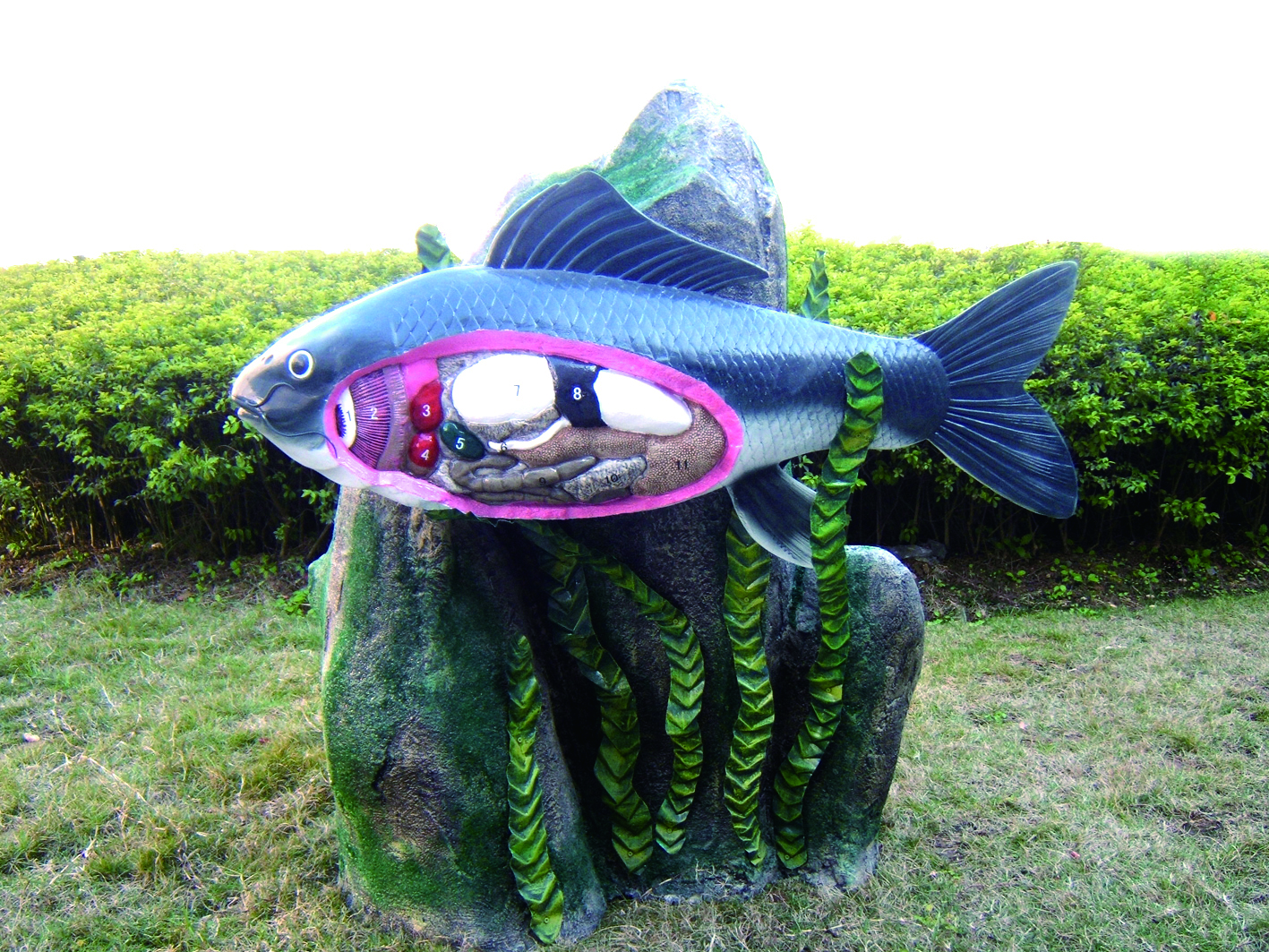 產(chǎn)品詳細(xì)介紹1200mm×350mm(高度不包括魚鰭)×210mm;高分子材料,以有色無機(jī)物為填充料,阻燃性好,采用多層網(wǎng)狀玻璃纖維布,一次性高壓成形,平均厚度5mm以上。表面使用進(jìn)口烤漆,不易褪色。 教學(xué)元素:模型表現(xiàn)了鯉魚的解剖詳細(xì)情況,內(nèi)容包括:1.鰓耙、2.鰓、3.心房、4.心室、5.膽囊、6.輸尿管、7.膘、8.腎、9.腸、10.胰臟、11.卵巢♀等。識別功能:根據(jù)實(shí)物等比制作,大小比例協(xié)調(diào),內(nèi)容詳細(xì),真實(shí)性較強(qiáng)。鯉魚體色真實(shí),鯉魚明亮逼真的眼睛,白色的胸腹,用銅條制作的魚須,魚鰭3個(gè),魚鱗的大小及分布都按實(shí)際比例制作,解剖面積為560mm×260mm,解剖為高浮雕效果。 模型底座識別功能:底座采用仿真海底石頭,材料為高分子混合材料制成,以有色無機(jī)物為填充材料,具有良好的阻燃性,使用多層網(wǎng)狀玻璃纖維布一次性高壓成形,平均厚度5mm以上。仿真海底石頭由3塊石頭組合而成,中間一塊高1300mm,左邊一塊高830mm,右邊一塊高560mm,總寬1080mm,總厚390mm。顏色為仿真海底石頭顏色,并夾帶海底地衣效果。使用進(jìn)口烤漆,不易褪色。 |