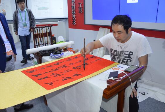 訥納漁攜愛評課藝學寶等亮相本次展會。本次展位風格依舊采用古典中國風,一書一畫相結合,采用了胡明德老師的山水畫作與楊衛磊書法家的書法。