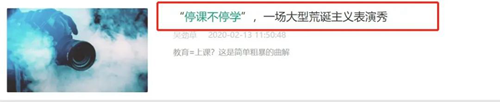 作為家長,我們最關注的還是孩子的學習狀態和成績。在疫情剛爆發那段時間,我關注到一些學校組織老師錄課,讓學生在家里看教學視頻或者直播,網上對此的負面評價頗多。而且我身邊也有一些同事、朋友也跟我吐槽:‘在家一邊辦公,一邊看孩子有沒有認真上課,還要給孩子拍照打卡,不然就要在家長群里被@,真是太難了。’