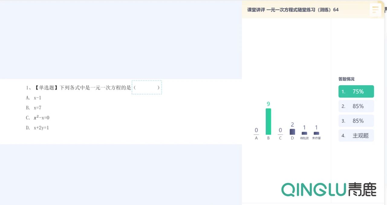 在青鹿智慧紙筆課堂,可支持課堂實時測練的場景,教師在課堂上將課前制作好的測練實時發布給學生進行作答,且支持作答中可實時查看學生的答題動態和卷面,作答后可實時統計和呈現結果,教師可以當堂進行講評。