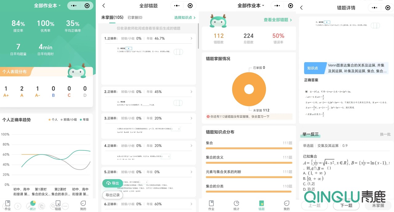 青鹿智慧作業(yè)能夠?qū)崿F(xiàn)錯題自動歸集,有助于為學(xué)生提供精準(zhǔn)的補(bǔ)償性訓(xùn)練,有效避免機(jī)械、重復(fù)性作業(yè)負(fù)擔(dān)。