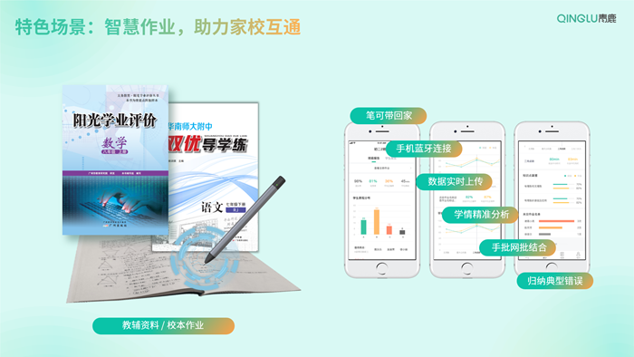 智慧紙筆系統(tǒng)通過(guò)伴隨式采集數(shù)據(jù)的智能筆終端,打通“課前、課中、課后”全流程,連接“家校”場(chǎng)景,實(shí)現(xiàn)對(duì)教學(xué)全場(chǎng)景、全流程的數(shù)據(jù)采集與分析。