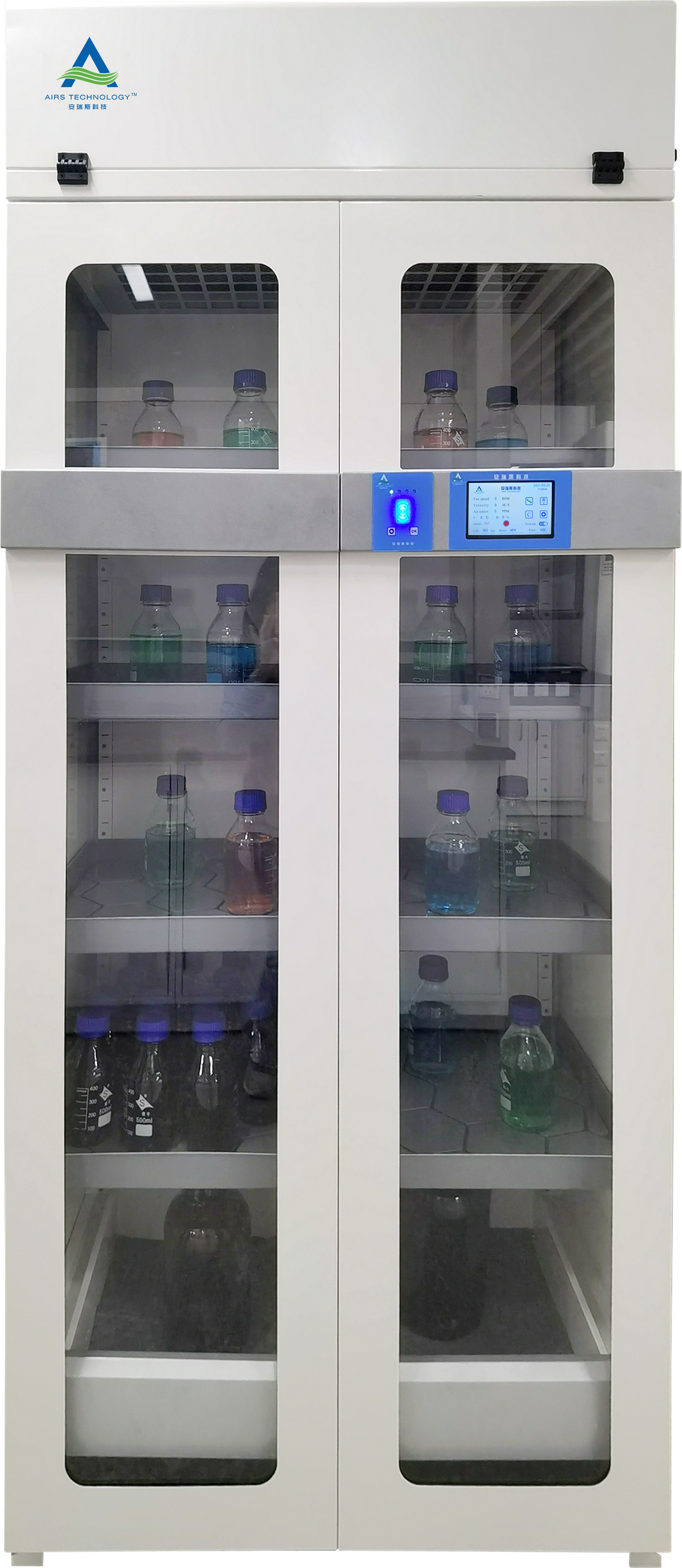 產品詳細介紹1. 外部尺寸(長×寬×高mm)≥900×550×2165mm;額定電壓100-230V/50-60HZ;內部工作電壓:DC24V;額定功率:45W/0.5A,空氣處理量:230m3/h,噪音:≤52 dba; 2. 儲存容量:≥200瓶500ml的存儲量; 3. 模塊化的高效過濾系統,按照實驗需求可選擇高效粒子過濾器或分子過濾器的組合;分子過濾器,遵循JG/T 385-2012標準,有效針有機揮發氣體、酸性物質,氨水和甲醛氣體,吸附能力強;過濾效率超過99%;過濾器外框采用鋁合金鈍化技術,耐腐蝕和老化,且可避免意外火災引起的過濾器燃燒等風險。過濾器進風口和出風口采用特殊的雙層PF截留微小顆粒,避免常規的分子過濾器,活性炭粉的灑落而造成的粉塵污染。可選配醫用級別高效HEPA14或U16/U17超高效過濾器,對大于0.3um的粒子,截留效率達99.995%以上; *4.標配5英寸的醫用級專業觸摸式顯示屏,可視化人機界面;便于實時查看和了解運行工況等關鍵指標;屏幕顯示設備型號、過濾器類型、風機運行狀況,過濾器 |