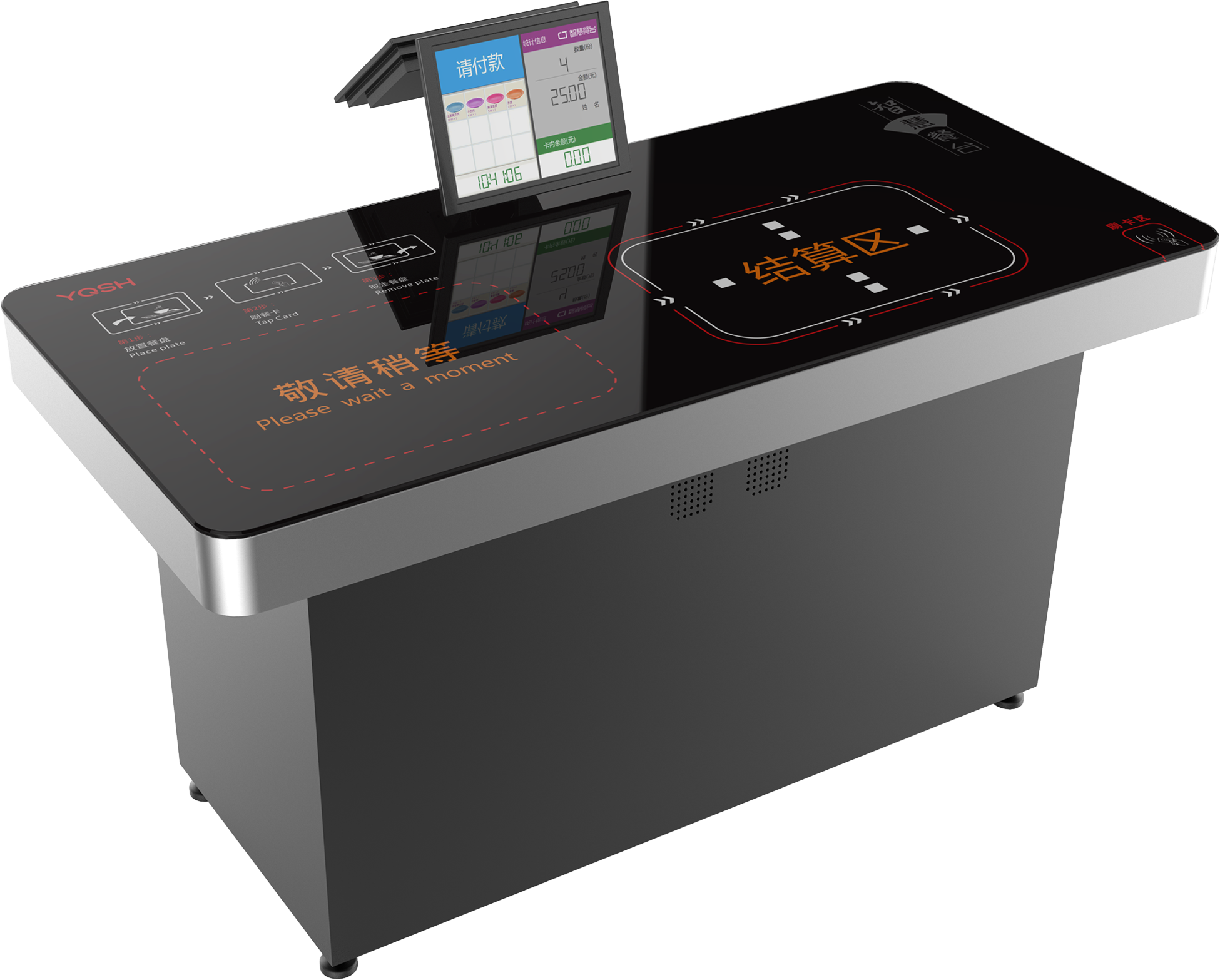 產品詳細介紹易科士大餐臺主要通過讀取智慧餐具中RFID標簽的方式,進行統一計價,并通過一卡通賬戶中的卡片進行支付。數據信息交予一卡通系統進行匯總管理,智慧餐臺通過液晶顯示屏將各類圖文信息直觀形象的展示給客戶。系統能夠7×24小時不間斷運行,故障率低,并且能確保在發生故障時,交易流水等重要數據不丟失。系統具備快速支付、安全高效等特點。