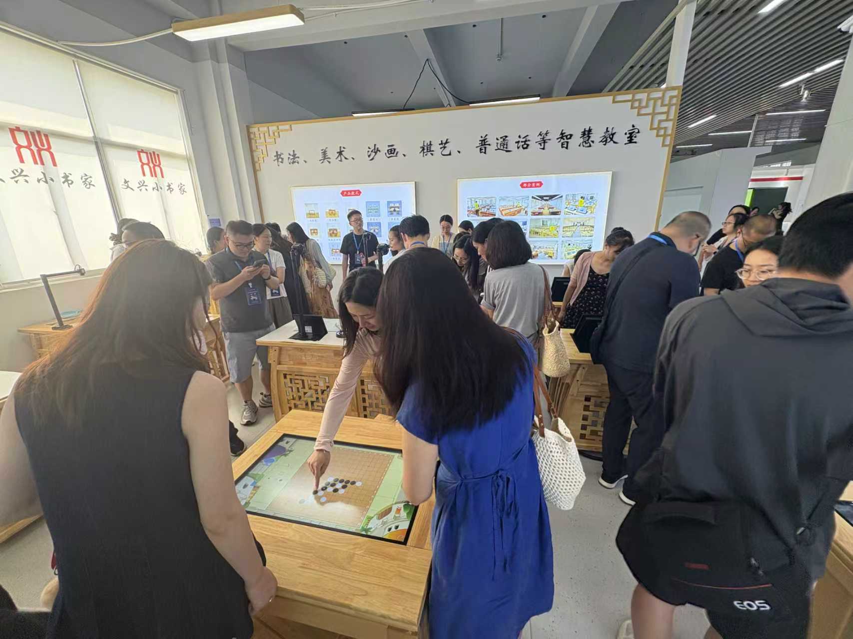2025年7月27日,浙江省麗水市云和縣教育管理青年干部研修班一行蒞臨文興小書家智慧教育體驗中心,圍繞“智慧書法、數字美術、創新棋藝、互動沙畫”四大主題展開深度研學。沉浸式體驗了書法、美術、棋藝和沙畫等一系列前沿教育產品,親身感受教育與科技融合帶來的無限魅力。